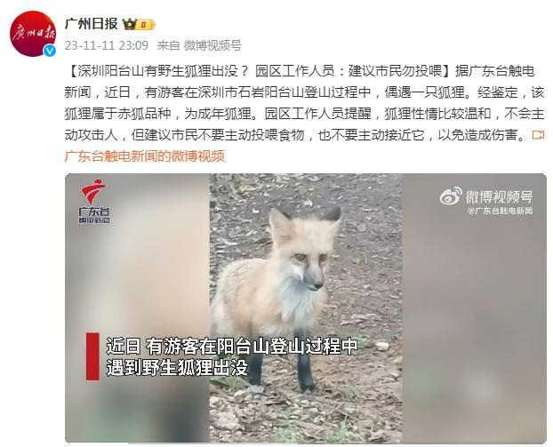 深圳阳台山有野生狐狸出没?园区工作人员:建议市民勿投喂
