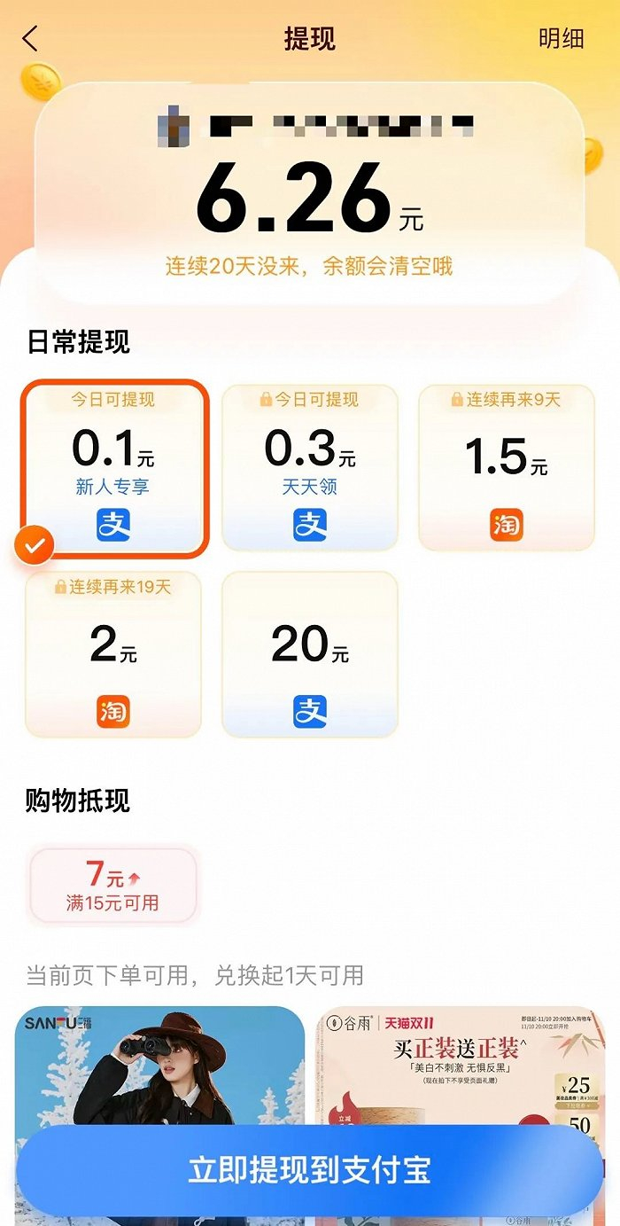 从吸引用户的手段来看,目前大多数平台还是以“看视频领现金”的方式,在美团刷视频时,能够频繁收到“红包现金已到账”语音提示。刷淘宝逛逛时,也会获得“金豆”,可以兑换成现金提现。不过,提现有一定的门槛,以淘宝逛逛为例,会设定“连续再来9天”、“连续再来19天”、“拉1人立即提现”等条件。而且如果长时间不来,相关收益也会清空。
