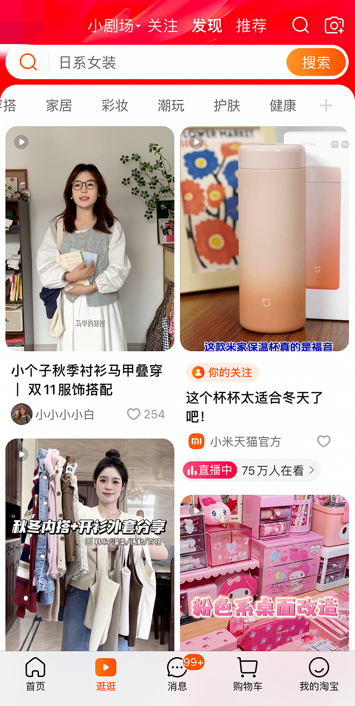 淘宝则细分了美食、穿搭、家居、彩妆、潮玩、护肤、健康这些不同的垂类,而且观察发现除了纯种草内容外,含有护肤技巧、产品对比等实用内容的数据表现会更好。比如已经在逛逛上有36.8万粉丝的穿搭博主@小小小小白,就分享了很多实用穿搭思路,虽然视频中都有产品链接,但并不会引起消费者的质疑与不满。