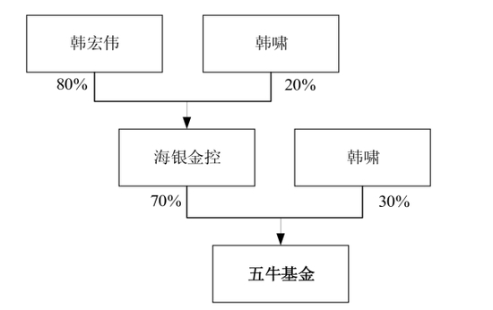 2015年7月,海银控股集团有限公司在上海注册成立,韩宏伟持股99%并出任法人代表,其女韩玉持股1%。