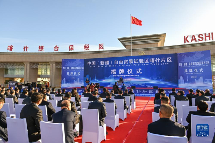 这是11月11日拍摄的中国(新疆)自由贸易试验区喀什片区揭牌仪式现场。