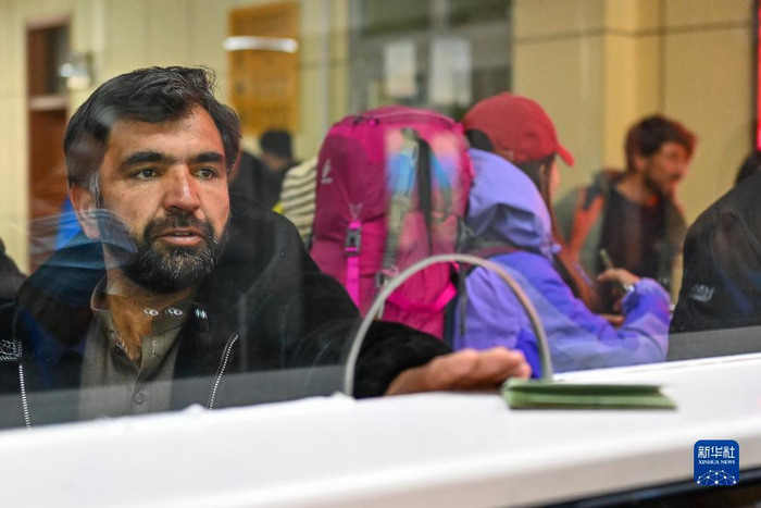 在新疆红其拉甫口岸联检大厅,出境旅客办理边检手续(11月6日摄)。