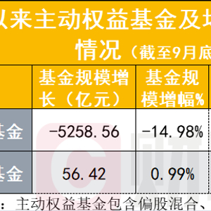 今年以来,主动权益基金短期业绩的惨淡已无可辩驳。截至三季度末,年内主动权益基金基金(含偏股混合、主动股票基金)规模缩水超5000亿元,较去年底减少近15%,基金份额亦减少721亿份,减幅2.47%。