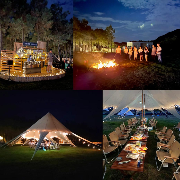 夜幕来临,围着篝火吃着烧烤,吃饱喝足后坐在帐篷外面稍作休息,将音箱打开放出节奏轻快的音浪,伴着晚风和音乐,说着那些啼笑皆非的人间故事。