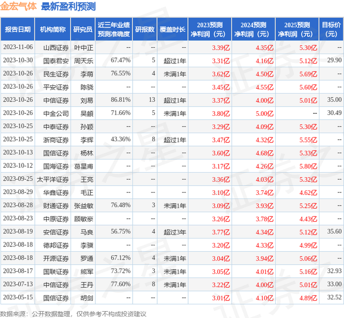 以下是详细的盈利预测信息:
