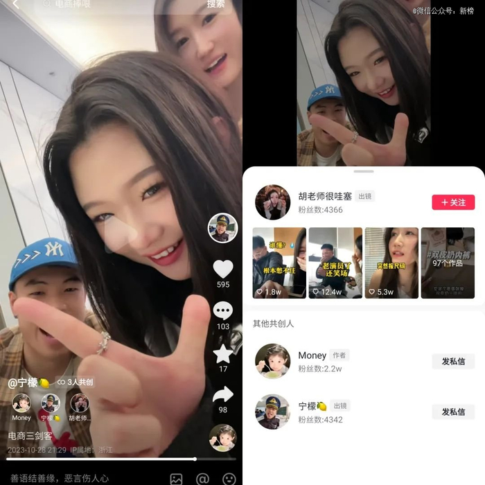 当中控话题冲上热榜后,宁檬和冰冰都敏锐地选择开直播,和网友在线聊直播和电商的话题,他们还梦幻联动一起直播,共同出镜拍视频。