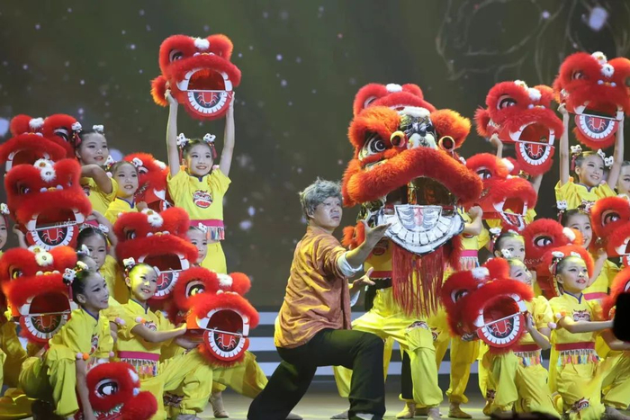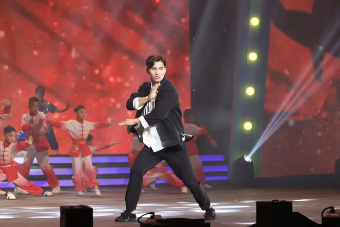 在铿锵有力的旋律中,50多名武林新生力军带来《功夫新生代》表演,展示咏春拳、洪拳、截拳道、舞狮等各武术功夫,一招一式有板有眼,拳拳到位,清脆整齐的呐喊彰显出生生不息的追梦力量。这些表演者绝大部分是由功夫电影新生代培育计划选送而来,来自佛山五区的学校或者武馆,年龄最小的仅7岁,学习功夫已近四年。