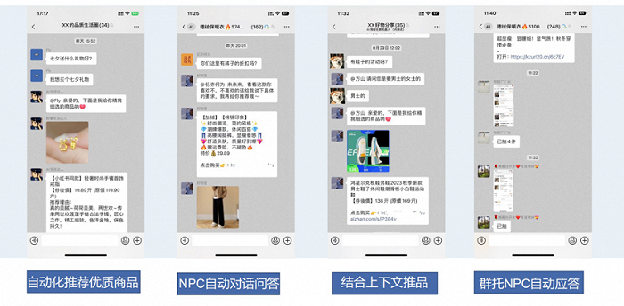 之前,淘客管理者需要用真人号在群里回复群主问题,活跃氛围,现在则可以通过氛围机器人,引导用户下单。一些特殊场景中,粉象生活会备注是内容为AI机器人所发,“这避免了不必要的纠纷,比以前那些所谓的‘托’更靠谱。”