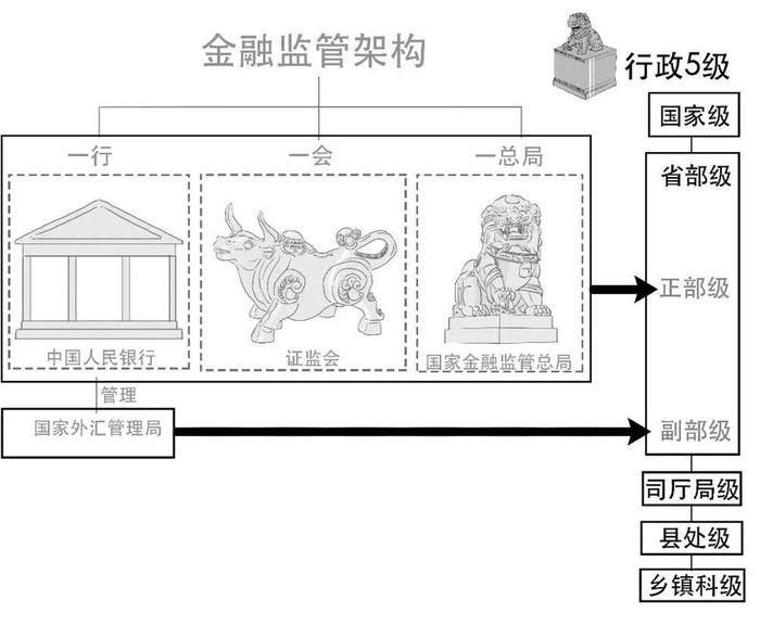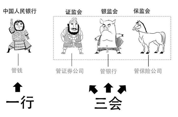 其中,央行负责货币政策制定和实施,而其他3个徒弟分别监管不同的金融行业,那时候,我们把这种金融监管框架称为“一行三会”。