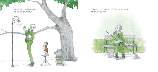 菲利普和埃琳创作的绘本总是在讲发生在过去的故事,不论是埃琳用版画和彩色铅笔创作的画,还是菲利普讲述的慢悠悠却令人温暖平静的故事,都给读者这样的感受。