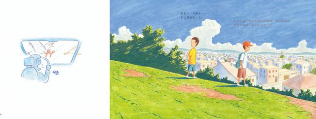 这是一本由蝴蝶效应延展开的原创绘本,作者大吴是《树王》《散步》的作者。与《散步》《露营》《游河》相似的是,故事依旧发生在兄弟二人散步的过程中。弟弟把一只蜗牛拿到大石头的顶端,而蜗牛被鸟叼走,从而引发了一系列连锁事件。哥哥对弟弟关心的蜗牛视而不见,一心想去吃冰淇淋、看电影,实际上他不知道,弟弟的蜗牛与他的计划是否能完成息息相关。