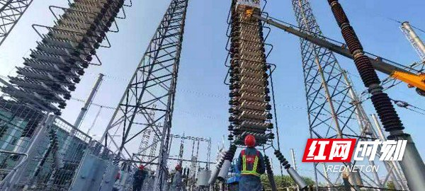 在±500千伏鹅城换流站控保改造及年度检修现场,工作人员正在开展直流场滤波设备检修。