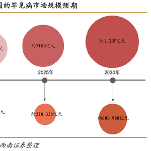 国内存在大量未被满足的患病群体,罕见病市场存在较大的市场增长空间。2020年全球罕见病市场规模约为4100亿元,中国市场约30-50 亿元,占比约为1%。根据BCG预测,2030年全球罕见病市场有望达到1.3万亿元,中国罕见病市场份额则有望达到600-900亿元,约占全球市场的5%-7%。