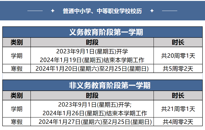 1.全市中小学于2023年8月27日开学(报到、注册、交费),8月28日(星期一)正式上课。