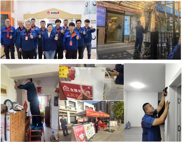 到达客户小区楼下,先打电话告知客户并询问是否方便上楼,得到客户允许后,入户轻敲门、做自我介绍、展示胸卡、穿鞋套进屋、铺台布,所有工器具和终端设备都放置在台布上……这是一个联通智家工程师上门服务的标准动作,显示着联通的细心与贴心。