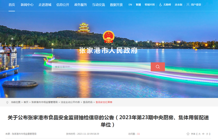 中国质量新闻网讯 据江苏省张家港市人民政府网站2023年11月10日消息,张家港市食品安全委员会办公室发布关于公布张家港市食品安全监督抽检信息的公告(2023年第23期中央厨房、集体用餐配送单位)。