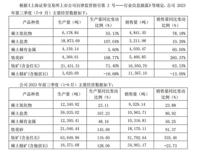 盛和资源还在三季报中公告了三季度和前三季度的主要经营数据情况: