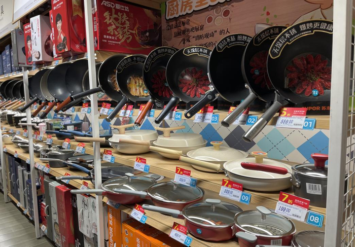 “章丘铁锅”火爆的同时也遭到了质疑,其背后隐藏的动因是什么?又是否真正名副其实?11月3日,记者来到位于江苏省南京市中山北路241号的汇蜂超市门店,实地探访市面上销售的“章丘铁锅”究竟是真是假。
