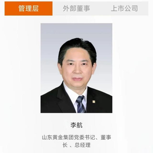 记者发现,山东黄金集团官网已更新管理团队信息。官网显示,李航现任山东黄金集团党委书记、董事长、总经理,山东黄金矿业股份有限公司(SH600547,HK01787)董事、董事长。李航,男,汉族,1970年1月生,四川平昌人,1994年7月参加工作,1993年7月加入中国共产党,在职研究生学历,企业管理学博士,金融学博士后,正高级会计师,美国注册会计师(AICPA),英国皇家特许管理会计师(CIMA),资深全球特许管理会计师(CGMA),全国会计领军人才,山东省首批泰山产业领军人才,山东省2019年度服务业专业人才,济南市第十一、十二批专业技术拔尖人才,荣获财政部“2013中国总会计师年度人物”“2015中国CFO年度人物”“全国先进会计工作者”等称号。