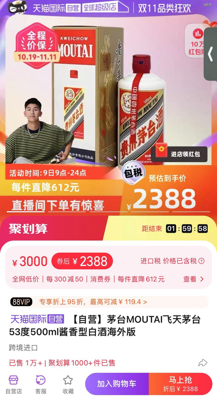 目前,双十一电商节已经开启提前购,在天猫五粮液官方旗舰店,500ml八代五粮液双瓶装仅售2100元,另外叠加不同种类消费券折扣后,价格几乎与出厂价持平。