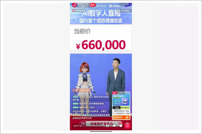 如果这样的场景不是出现在阿里资产官方台淘宝直播间里,很多人可能以为这仅仅是一场科幻电影,但这却是一次真正具有约束效力的真实拍卖。最终一位95后的年轻富豪,以66万元的价格竞得数字人bot首次开放定制的独有权限。