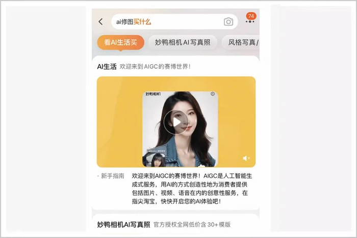 要知道,在此前七年多的时间里,淘宝的一级类目都还没有出现过新面孔,以AIGC为代表的人工智能服务,能够单独撑起一个一级类目的门面吗?