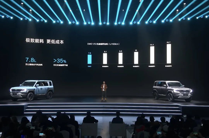 这主要得益于DMO超级混动越野平台,这一技术由全新混动非承载式架构和越野专用混动架构组成,集合了比亚迪既有的混动技术DM-i和DM-p的优势,既能做到DM-i的经济性还能兼顾DM-p的性能。