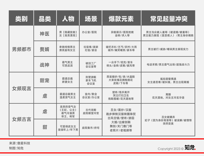 司文向知危编辑部表示,“ 下沉市场早已不是主流了,现在高收入人群也都在看,像我接触的人,一问才知道很多中产甚者富豪都在追。性别占比也在变化,女性题材也会表现出很好的长尾效应和很长的生命周期。”