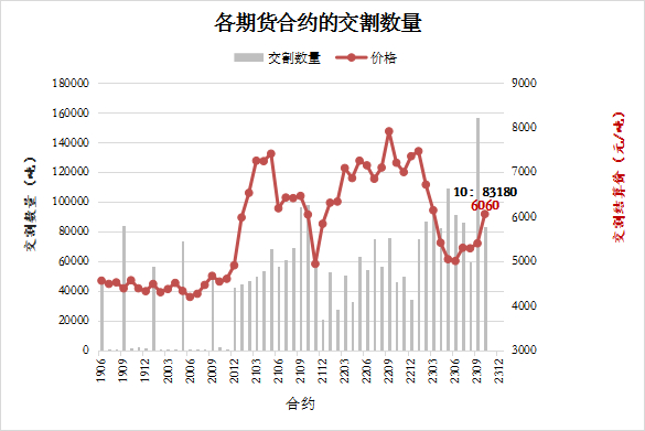 10合约进入交割,交割价6060元/吨,数量8万吨;而上一个合约09的交割量创下历史最高,接近15.7万吨,加上期转现交割3000吨,09合约的交割量达到16万吨!