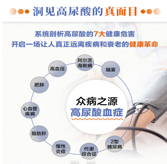 许多人认为它只不过是我们正常生理过程中一个微不足道的、偶然的副产品。但珀尔马特博士在《疯狂的尿酸》一书中指出:在人体最基础的新陈代谢过程的调节机制中,尿酸都发挥着关键作用。如果不加以控制或管理不善,它将会是引发许多健康问题的罪魁祸首。