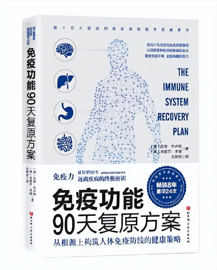 今天小编要给大家推荐一本国际功能医学的权威著作,它曾长期占据美国、德国免疫医学图书畅销榜榜首,版权销售至8个国家,重印24次。这本书就是由功能医学先驱、美国纽约西奈山医学院预防医学系教授苏珊·布卢姆博士所著的《免疫功能90天复原方案》。