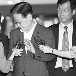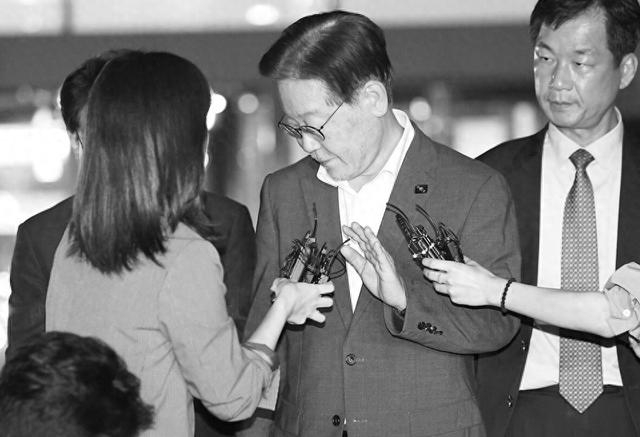 9月9日,李在明在水原市灵通区水原地方检察厅结束相关调查后,接受记者采访。(视觉中国)