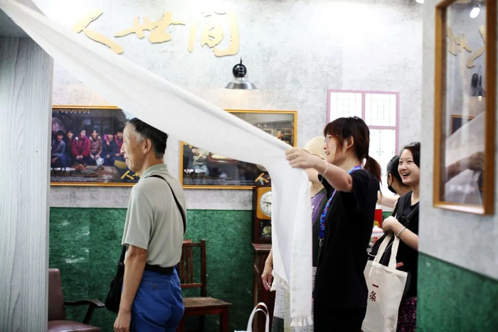 展台现场,《斗破苍穹》里萧炎使用的玄重尺、《庆余年》中庆帝使用的复合弓等影视道具与《诡秘之主》《全职高手》等周边衍生品惊喜亮相,吸引众多IP粉丝前来打卡。阅文还将展台一角布置为电视剧《人世间》场景,其中的“时光照相馆”可为观众拍摄参展纪念照,是现场人气最旺的展区之一。