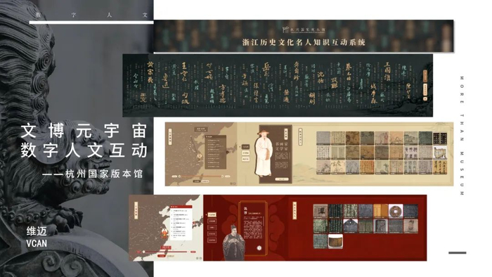 行业龙头维迈VCAN是全国文博文旅行业数智化一站式解决方案服务商。本次展厅带来“四大亮点”呈现维迈VCAN多年来在“文博展馆全案、数字文博、智慧文旅、文化遗产、城市更新、建筑科技及AIGC”等领域的全新技术成果与优秀作品: