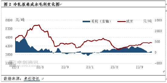 成本毛利方面:本旬度冷轧板卷平均成本4496元/吨,较上一旬度增加46元/吨,增幅1.03%。本旬度冷轧板卷平均毛利38元/吨,较上一旬度增加29元/吨。