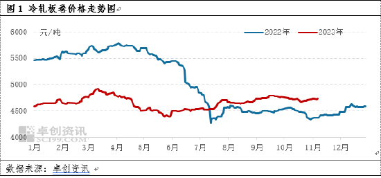 中旬,冷轧板卷市场虽然供应方面有一定增加预期,但与之相对的下游需求亦存在增加的预期。再者,钢市偏强氛围已经形成,对冷轧板卷市场情绪存在一定带动,随着市场看涨意愿增加,市场价格更易于上涨。但中旬市场仍需注意市场的实际交投表现,若市场交投积极性不能持续增加,市场情绪或逐渐转空。具体依据如下:成本方面:焦炭方面,双重利多支撑下,焦企逐步产生提涨意向,内蒙个别焦企试探性提涨,多数观望,成本方面对市场有一定利多影响。宏观及消息面:中旬密切关注固定资产投资和地产类综合数据公布后对冷轧板卷现货及大宗商品市场的影响。国内来看,内贸需求伴随天气转冷后尤其部分区域已经迎来降雪天气,工地施工受阻,钢材终端需求室外作业带来的钢材需求释放迟缓,地产数据关注从完工数据到土地交易数据和新开工数据的链条传递进度。冷轧板卷现货的出口订单暂告一段落,对市场影响有限,钢铁下游其它领域需求释放程度不一。国际来看,美联储未来一段时间或维持相对较高稳定利率,但依然要关注美债收益率走高对大宗商品的利空影响依然存在。国际上大国博弈和地缘政治风险并存,主流经济体间矛盾有进一步缓和迹象出现,或利多国际大宗商品市场流通,对于国际大宗商品市场的影响依然较强。同时密切关注国际重要组织对于未来GDP增速预期的判断对大宗商品市场的影响。汇率方面,美元指数短期有窄幅趋弱调整的预期,同时人民币对美元汇率双边调整趋向贬值为主,同时关注人民币一篮子的货币进一步趋强表现。在国内经济增长的进程中,继续关注新旧动能转化下新能源汽车、家电等诸多下游领域的消费数据表现对钢铁市场的影响。货币政策方面,继续关注未来稳增长预期下,年内不排除依然有降息和降准的进一步操作可能出现,继续维持相对宽松时间或延长。供需:供应方面,中旬冷轧板卷一家钢厂恢复生产,预计下周冷轧板卷产量增加1.2万吨至237.1万吨。需求方面,市场终端存在一定补货刚需,供需面总体对市场利多。