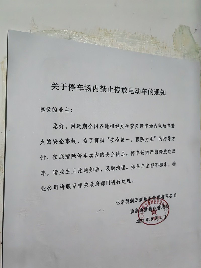 汤泉逸墅小区地库中,发通知的单位是“老物业”