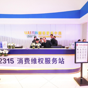 11月6日下午,记者来到运城市吾悦广场客服中心。一上电梯,客服中心柜台面对电梯的一面特别醒目地标注着“12315消费维权服务站”,柜台后的背景墙则标明了“吾悦广场顾客服务中心”。在服务站左手边墙上,挂着一个公示牌,公示牌上标明服务站站长是王君,工作人员是贺楠,监管人员则是市场监管部门的景鹏和相臣两位同志,每个人的名字底下都注明了手机号。消费者如果在商场内遇到消费纠纷,随时可以联系消费维权服务站或市场监管局工作人员。墙上还张贴了消费维权服务站受理投诉制度、程序、职责及协商和解制度。