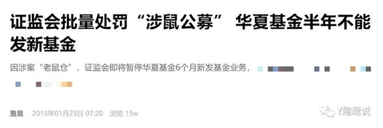 此前,据界面新闻2015年报道,证监会针对“老鼠仓”事件处罚涉案基金公司中,华夏基金就被证监会叫停6个月新发基金业务。