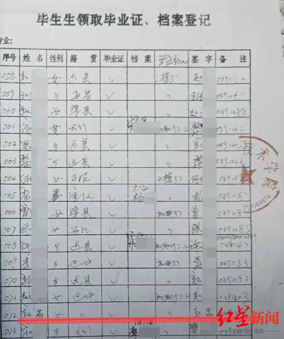 2018年6月25日,达州职业技术学院为她复印了一份达州市农机校学生科的《毕业时领取毕业证、档案登记》表格,其中记载,赵荔在毕业时只领取了毕业证,档案一栏并未划勾。