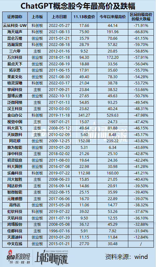 ChatGPT概念股|三六零、汉王科技等10家公司上市多年仍破发 海天瑞声、云从科技已回吐今年大部分涨幅