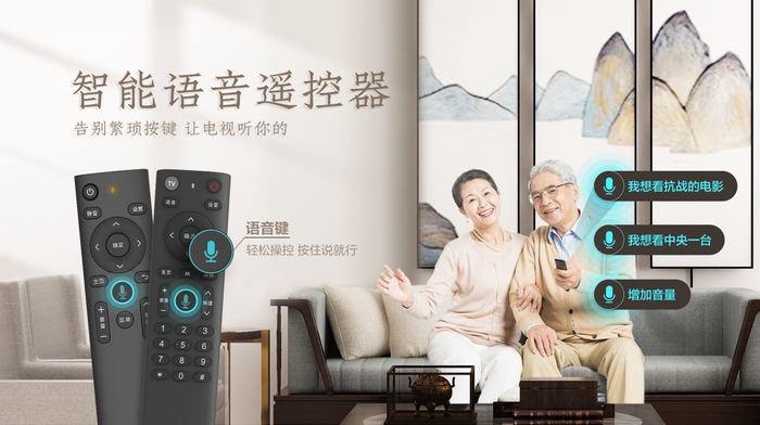 在遥控器上增加语音技术能力,可极大方便家庭用户通过语音遥控器实现他们的看电视需求。按住遥控器语音键说:“我想看新闻联播/CCTV1/芒果台”、“我想看周星驰的电影”、“增加音量”……想要的内容所说即所得,马上就可以在电视中展现出来。目前语音遥控器支持影视、音乐、游戏、教育、应用等全领域搜索,操作方便快捷。