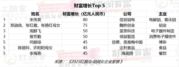 其他财富增长较多的女企业家,包括蓝思科技周群飞、领益智造曾芳勤,都增长了50亿元。胡润介绍,今年表现较好的女企业家,主要来自苹果产业链。