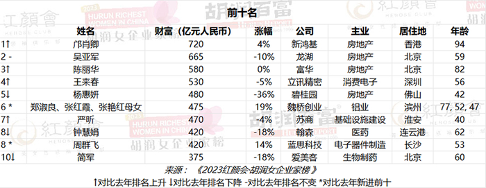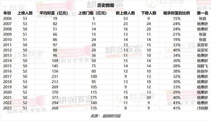 在此次榜单中,昔日女首富均有上榜。