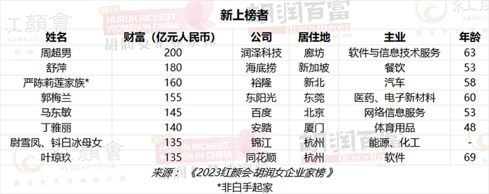 榜单显示,20位上榜女企业家,财富比去年增长,包括8位新人。