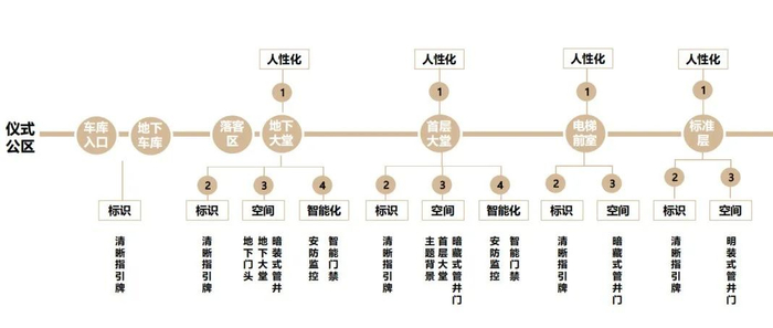 比如一套完整的客户从地库归家的动线设计: