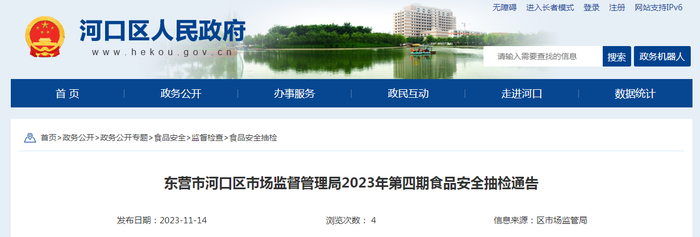 山东省东营市河口区市场监管局发布2023年第四期食品安全抽检通告