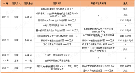 按理说康恩贝不缺钱,但回首看这些年反而没少募钱,2007-2018年进行了五次定增,共计募得50亿。