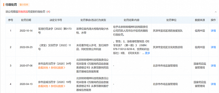 除此之外,转转还因违规多次被罚。天眼查数据显示,转转曾被行政处罚四次,被罚原因包括未取得《互联网药品信息服务资格证书》从事互联网药品医疗器械信息服务,以及未获得著作权人许可,发行其作品等等。