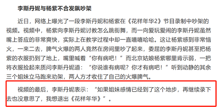 节目中,平时人缘很好的杨紫在节目中突然对李斯丹妮发脾气,指责她教舞蹈不认真。
